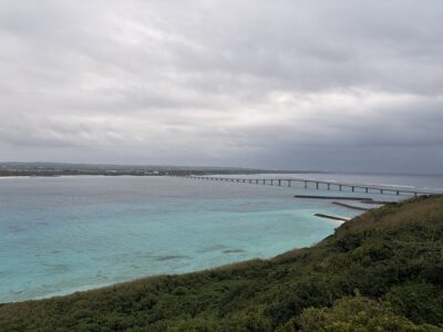 曇り空の下、伊良部大橋へ向かいます。