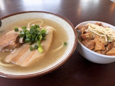 あっさり系でおいしい宮古そばでした。数量限定につられてネギ塩豚丼もいってみましたが、こっちは平凡な感じ。