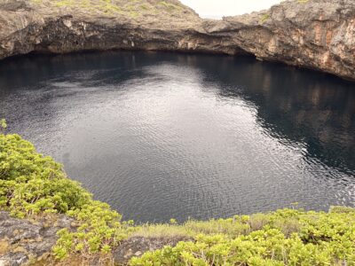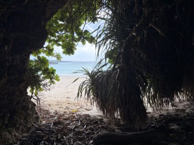 一応洞窟の中から外を見るとこんな感じ↓。綺麗な海とビーチが見えて、中はとても静かです。ちゃんと安全を確保できたら、良い瞑想場所になるかもしれませんが。