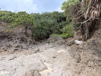 乗瀬橋を歩いて下地島へ渡って、すぐ左にまがったところの木の間を入っていきます。