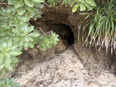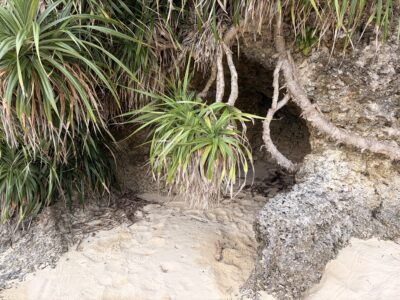 さて少し手前の砂浜に戻ってみると、いくつも洞窟が発見できます。