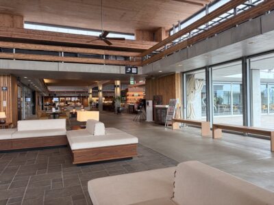 オシャレ空港。Wi-Fiもあり、ソファに電源コンセントもあり、快適に過ごせます。