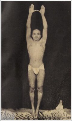 しかし、ここで紹介されている写真のように、腕を上に伸ばすターダーサナも、各流派に見受けられます。サティヤナンダ氏もヤシの木のポーズとして以下の記事で紹介しているように手を組んで背伸びをするポーズを紹介していますが、ここでクリシュナマチャリア氏が紹介している形は、これとも異なるようです。