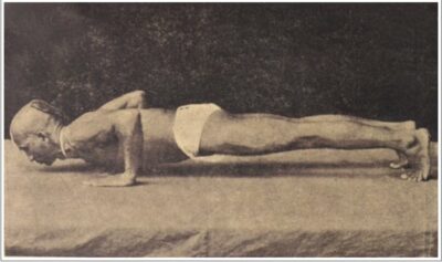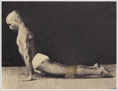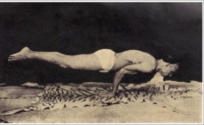 アシュタンガヨガにも含まれ、現代ヨガでもよく行われる体幹強化ポーズですが、ここで示されている写真は現代ヨガのやり方とは少し異なるようで、上半身は後ろに少し倒れる形になっています。